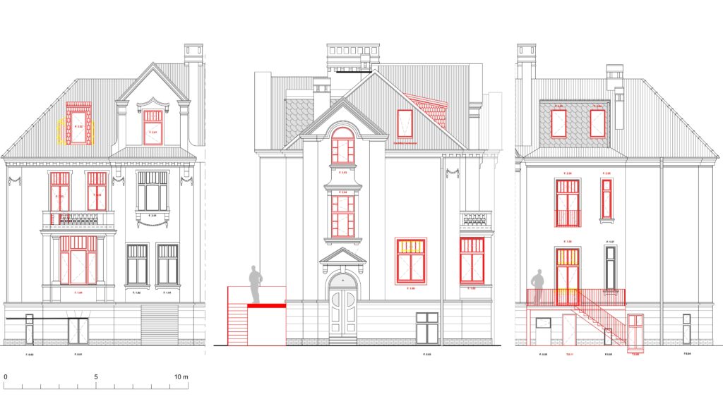 Für das Gewerk Heizung bestand die Herausforderung, eine Wärmepumpe einzusetzen, ohne dass zusätzliche Wärmedämmmaßnahmen an der Fassade vorgesehen war. Auch die Kastenfenster verblieben, hier wurden die Scheiben bei der Aufarbeitung mit der Thermoglas ausgestattet.